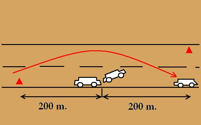 - si vous êtes en voiture s’arrêter après l’accident à une distance de 200 mètres